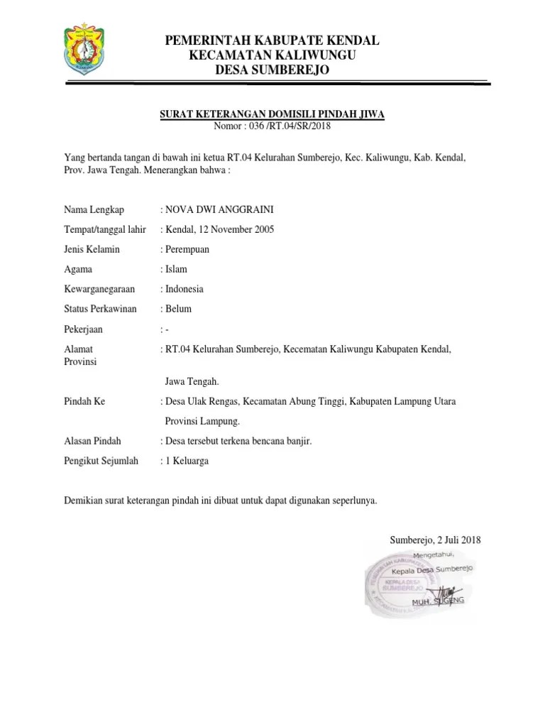 Format Surat Keterangan Pindah Domisili - Contoh Surat Pindah Domisili Antar Kabupaten Contoh Surat : Lampiran pendukung akta ( kelahiran/kawin .